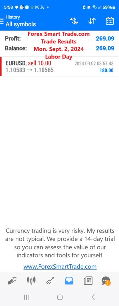 Forex Smart Trade Results, Monday, September 2, 2024, Labor Day – $269