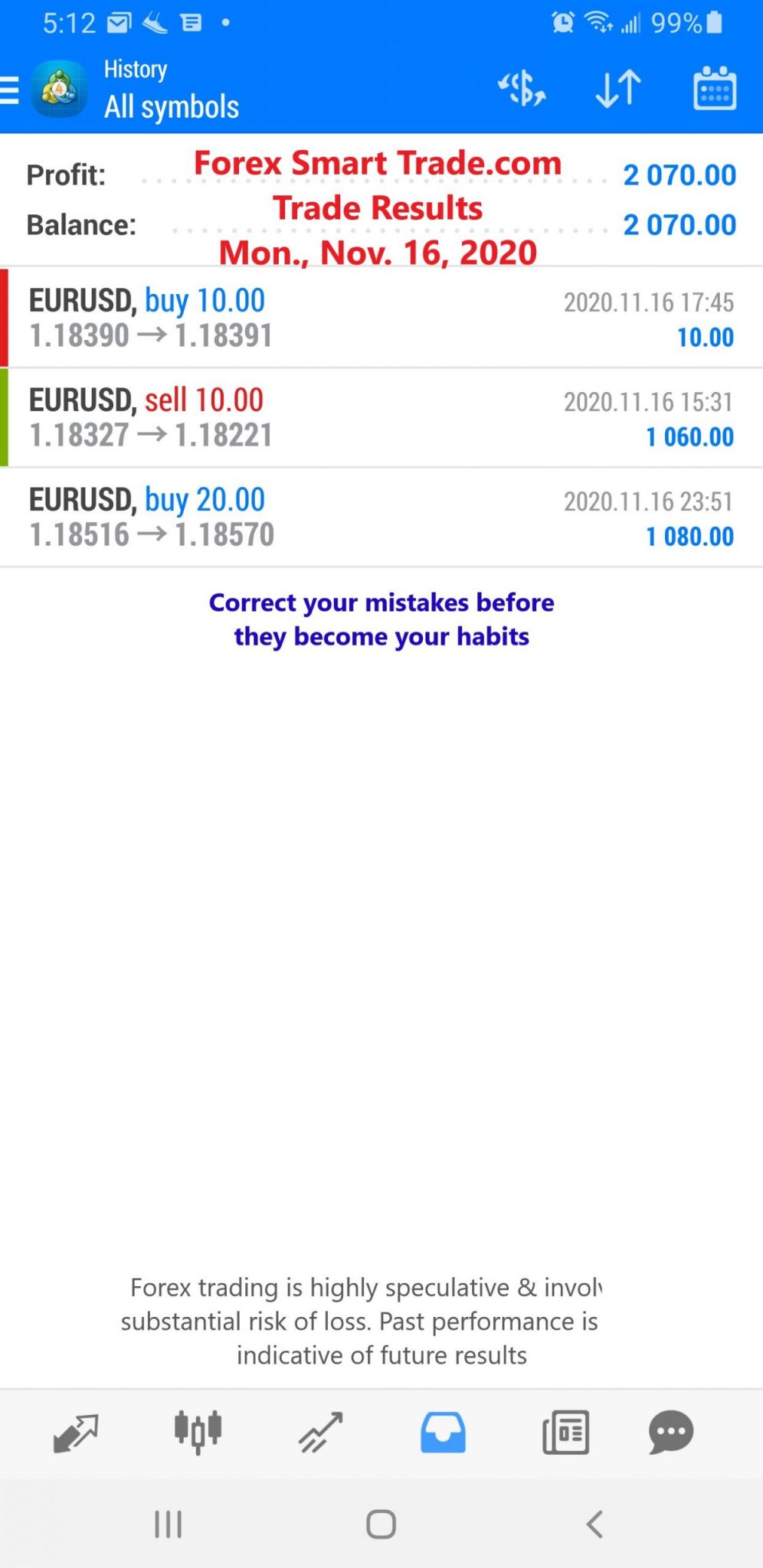 Monday, November 16, 2020 – Trade Results – Forex Smart Trade.com