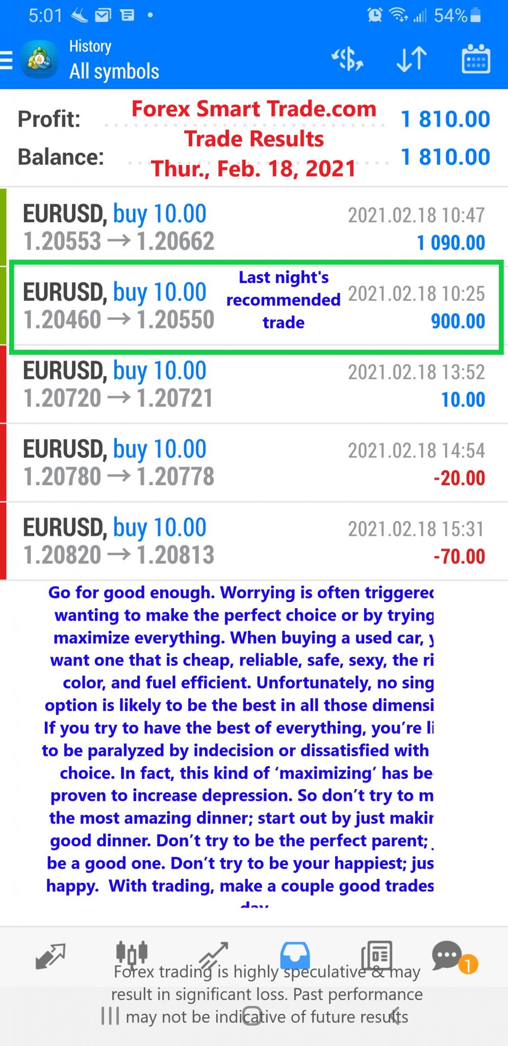 Thursday, February 18, 2021 – Trade Results – Forex Smart Trade