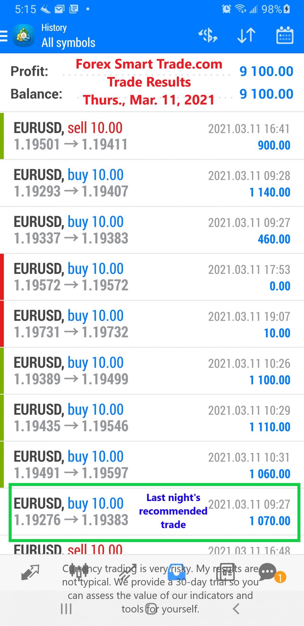 Thursday, March 11, 2021 – Trade Results – Forex Smart Trade