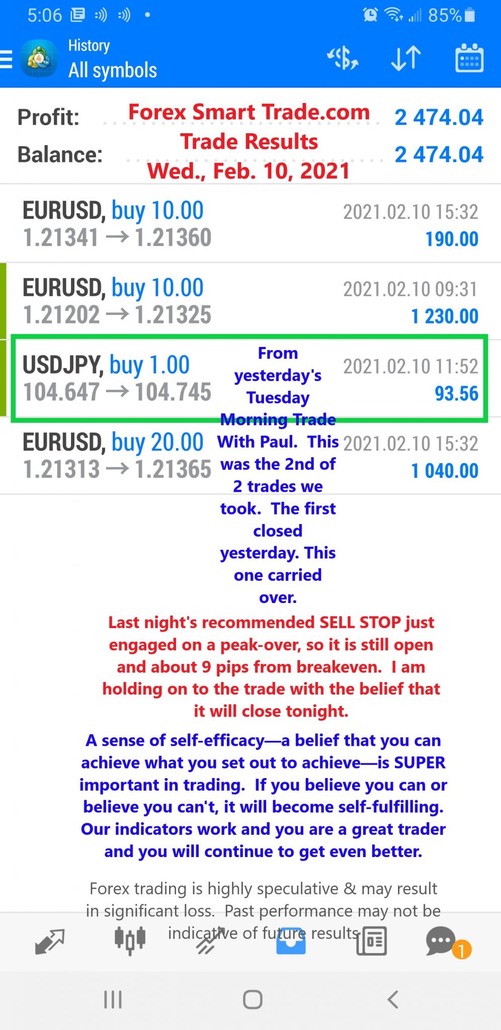 Wednesday, February 10, 2021 – Trade Results – Forex Smart Trade